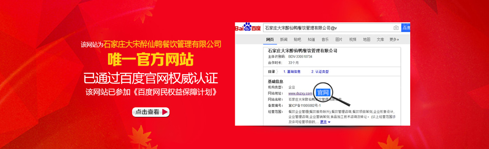 隨著產(chǎn)品的升級(jí),大宋醉仙鴨總部的經(jīng)營理念不斷提升,經(jīng)營的規(guī)模不斷擴(kuò)大,之后又陸續(xù)開了多家直營店。2014年3月,石家莊大宋醉仙鴨餐飲管理有限公司正式成立,之后在國家商標(biāo)總局申請(qǐng)注冊(cè)“大宋醉仙鴨”商標(biāo)。